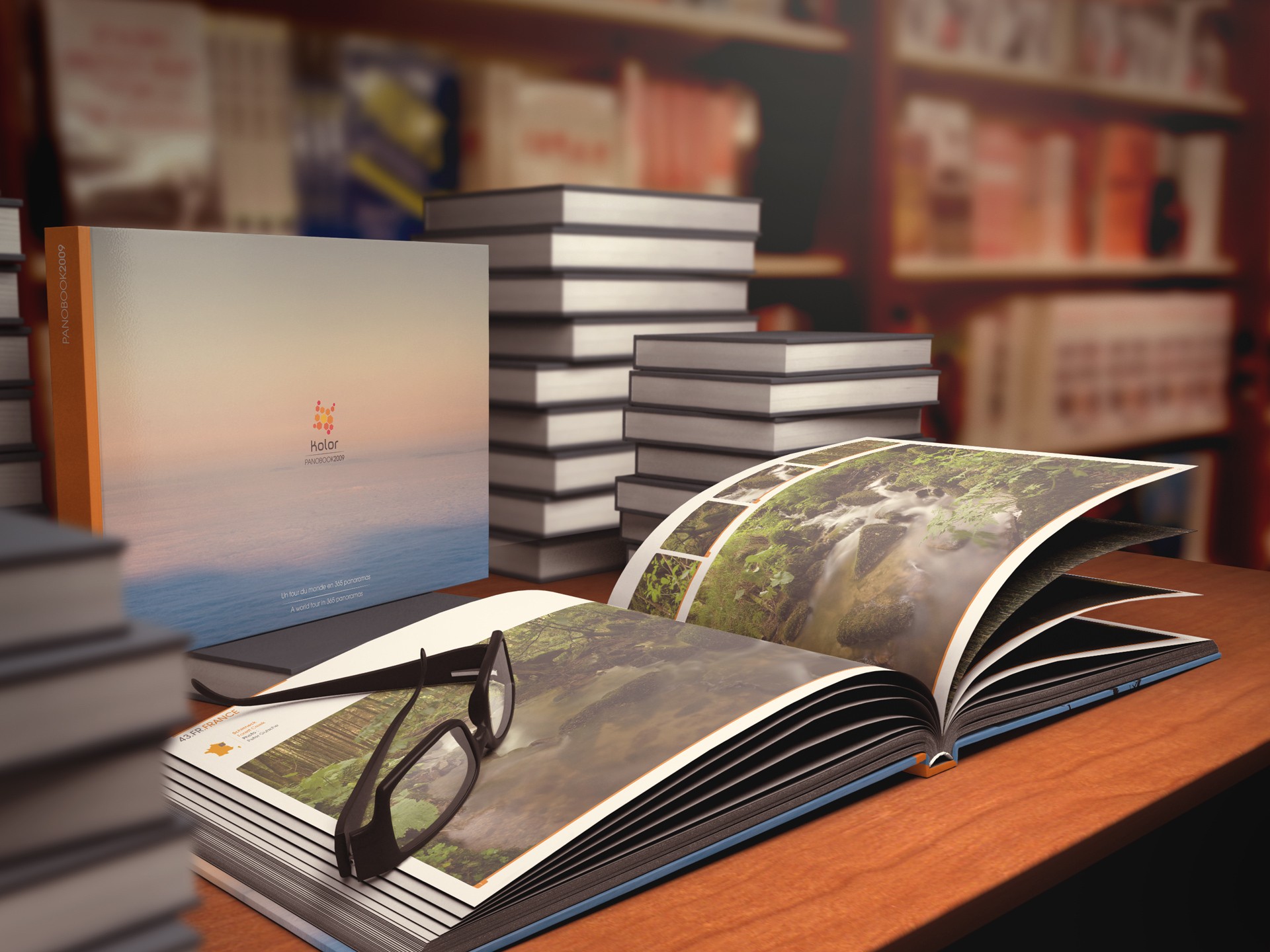 Direction artistique et création du livre Kolor Panobook édition 2009, présentant les créations des photographes utilisant le potentiel énorme du logiciel Autopano développé par la société Kolor.