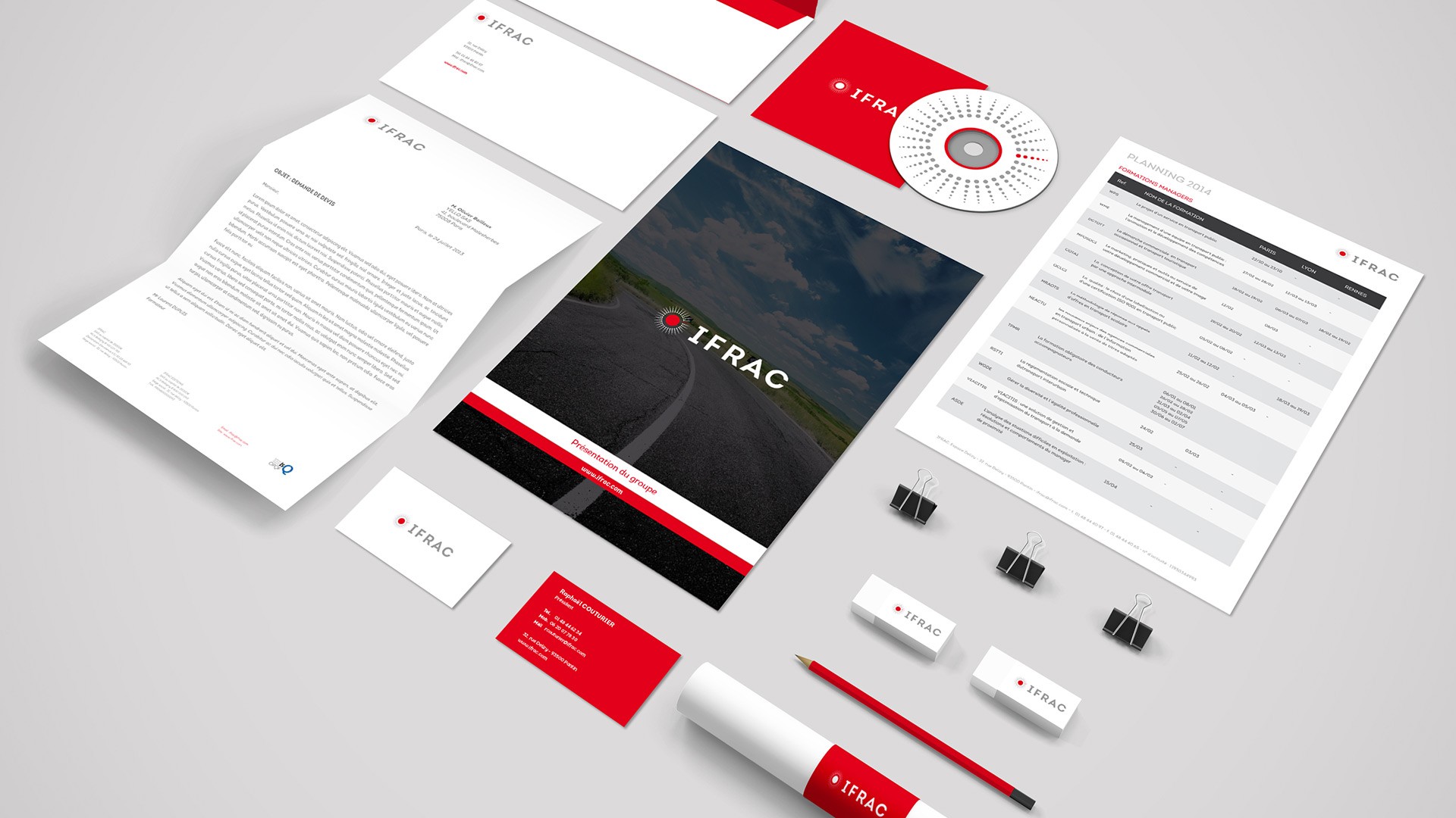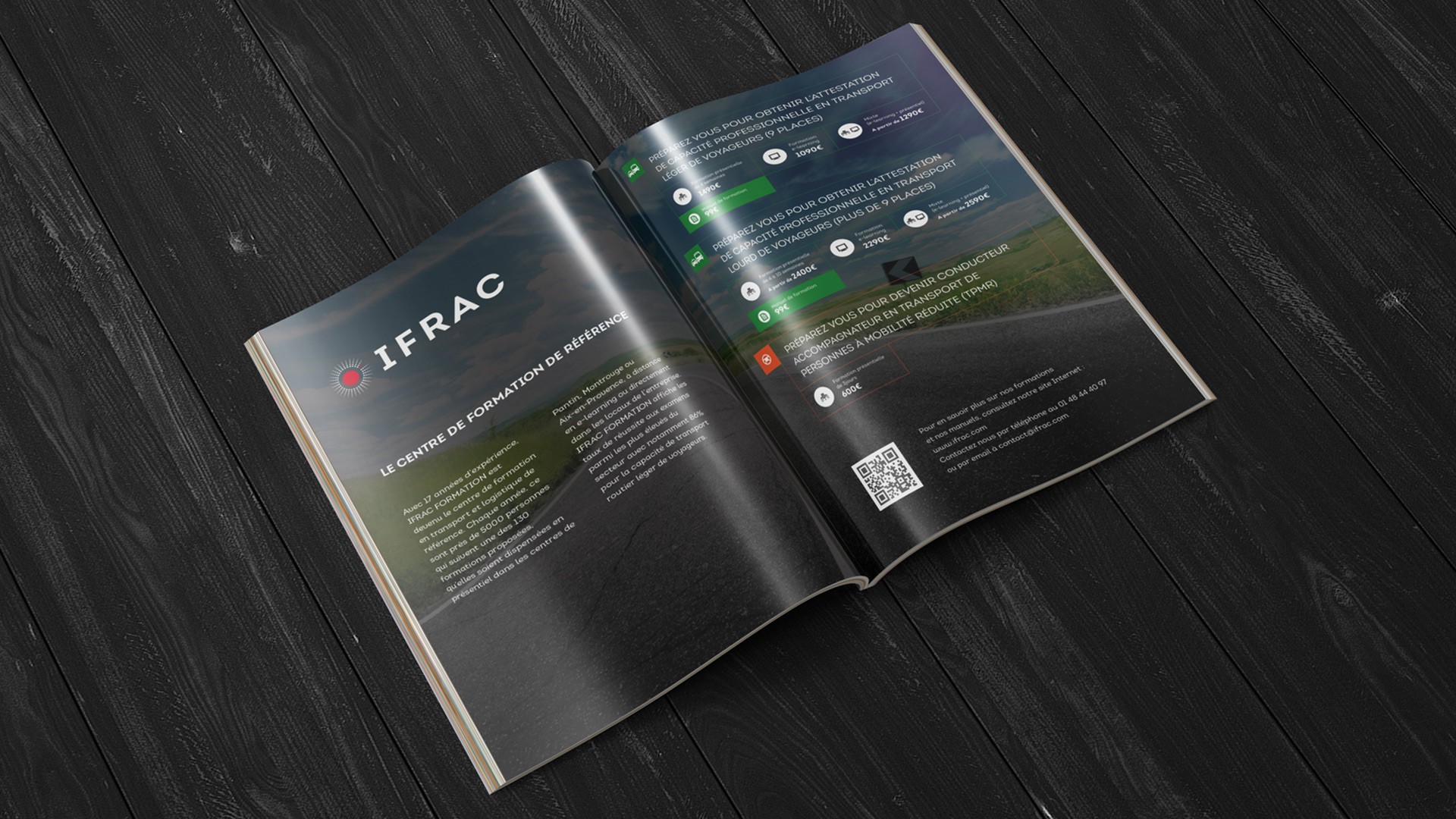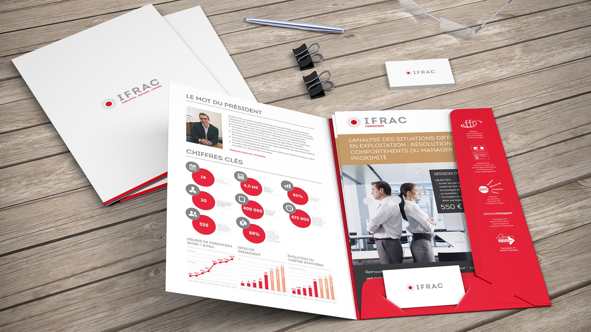 Création de l'identité visuelle complète, de l'ensemble des supports de communication du centre de formation professionnelle IFRAC, spécialisé dans les formations en transport, logistique, conduite et sécurité pour le compte de l'agence Everside, Paris.
